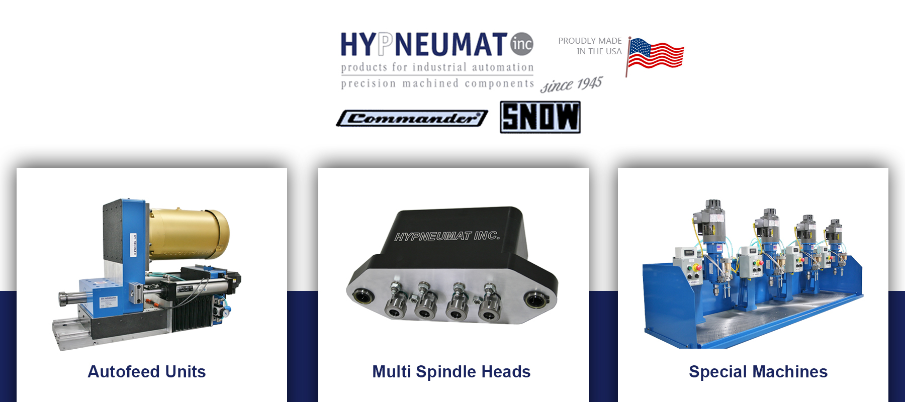 Hypneumat, Inc. manufactures an array of automatic drilling units, tapping units and multiple spindle heads under the Hypneumat, Commander and Snow brands. Hypneumat also specializes in contract machining services offering multi-axis turning and vertical machining capabilities. Since 1974Gro-Mac is the ONLY authorized mid-west distributor in Michigan, Illinois, Indiana, Ohio, Pennsylvania, & Kentucky.